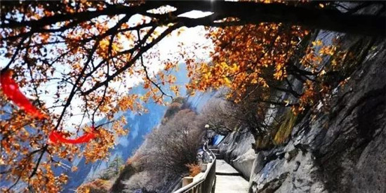 華山的紅葉是一種渾然天成、不加修飾的美。云淡風輕、紅葉晚霞,郎才女貌,天然絕配。華山紅葉依托青山白云,無疑中便蘊含大自然神秘的面紗,也吸引名人志士的不懈探索與尋覓,天然造成鐘靈毓秀,是珍稀植物的棲息隱居良地。