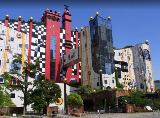 而在《名偵探柯南》里出現(xiàn)的垃圾處理廠也有真實場景。由宮崎駿的偶像百水先生進行外觀設計的大阪舞洲島垃圾處理廠,遠遠看去仿佛游樂場,不知情的人絕不會把它和垃圾聯(lián)系在一起。處理廠干凈整潔、色彩明亮得恍若安徒生的童話世界,紅黃的條紋象征著燃燒的火焰,形態(tài)各異的可愛窗子與爬山虎裝點著墻壁,標志性的長管煙囪令人想起長發(fā)公主的城堡……