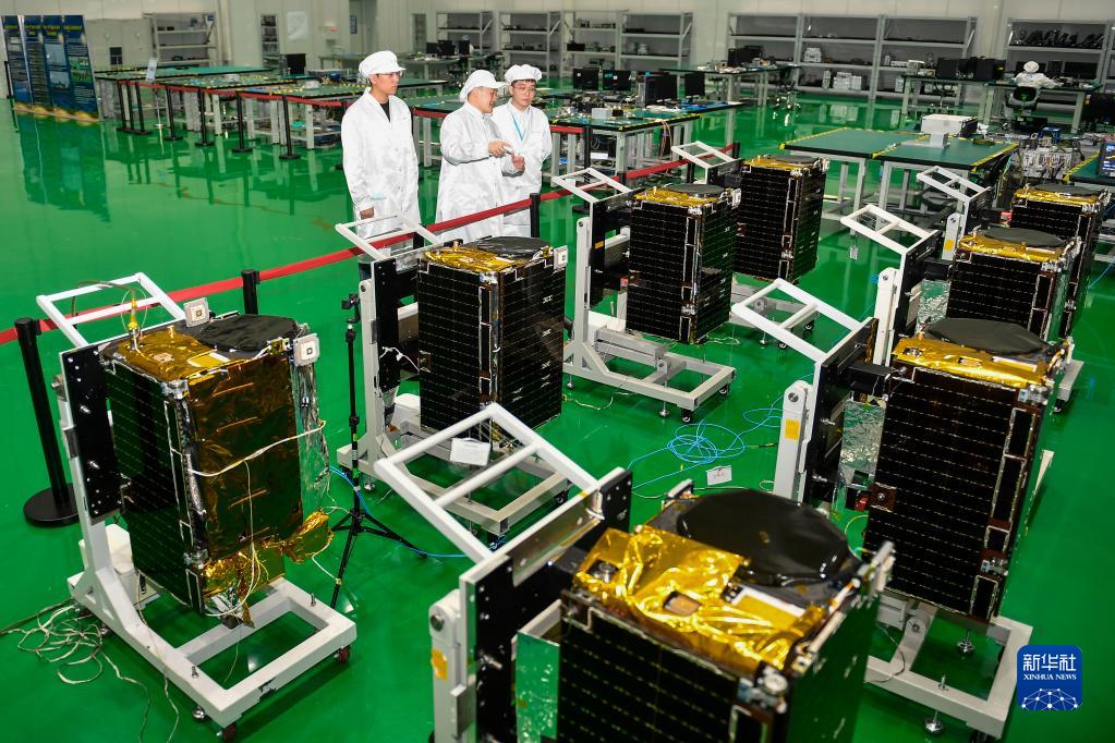 在吉林長(zhǎng)春,長(zhǎng)光衛(wèi)星技術(shù)股份有限公司科研人員在衛(wèi)星總裝測(cè)試大廳進(jìn)行相關(guān)測(cè)試工作 (2022年10月17日攝)。新華社記者 許暢 攝