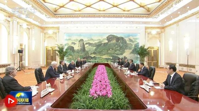 10月9日下午,國家主席習近平在人民大會堂會見美國國會參議院多數(shù)黨領(lǐng)袖舒默率領(lǐng)的美國國會參議院兩黨代表團。