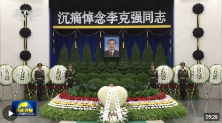 上午9時許,習近平和夫人彭麗媛,李強、趙樂際、王滬寧、蔡奇、丁薛祥、李希、韓正等,在哀樂聲中緩步來到李克強同志的遺體前肅立默哀,向李克強同志的遺體三鞠躬,并與李克強同志親屬一一握手,表示慰問。胡錦濤送花圈,對李克強同志逝世表示哀悼。