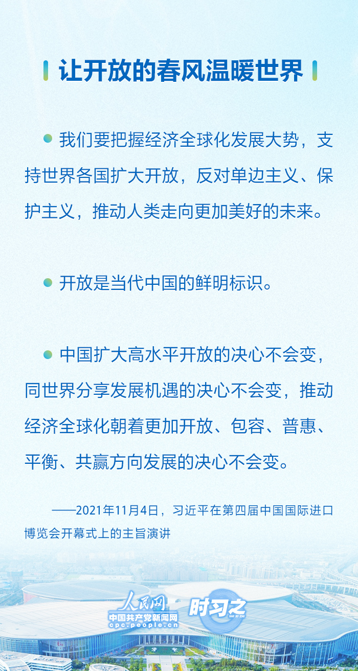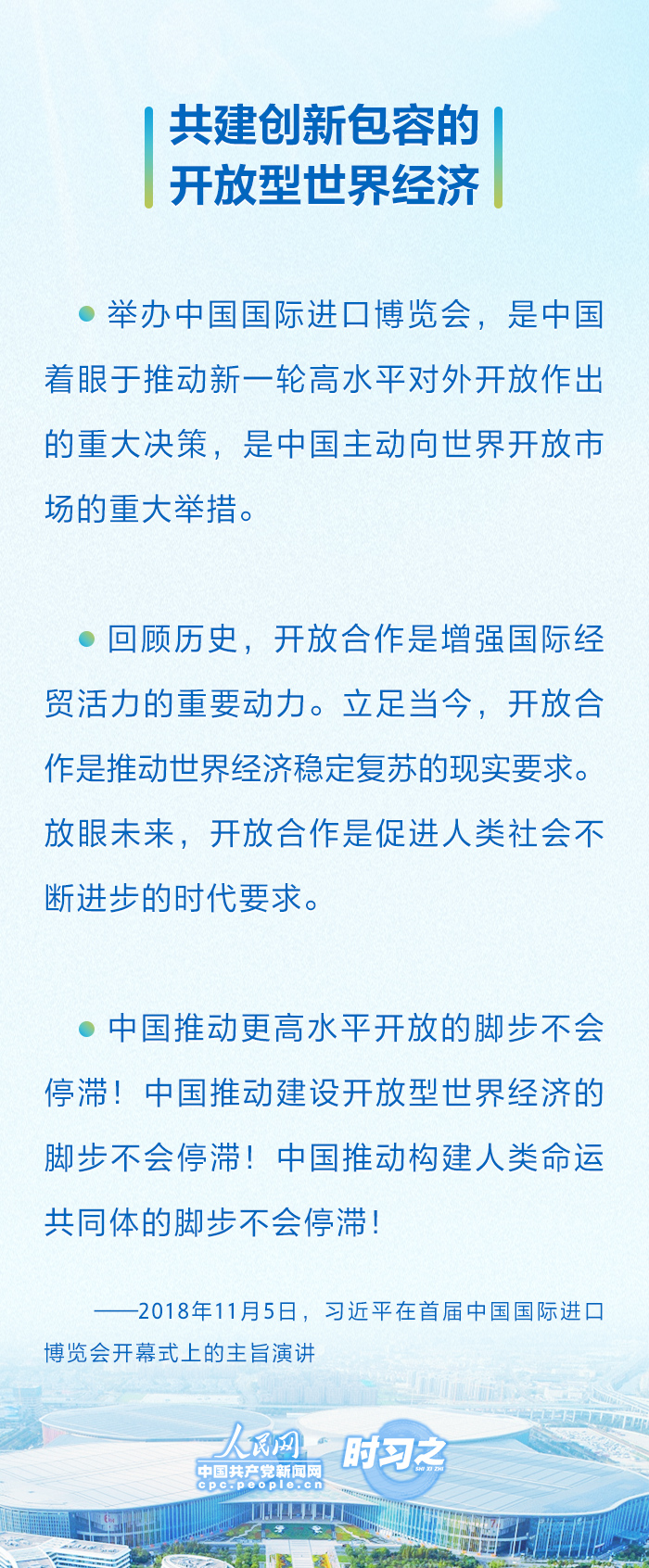 自首屆以來,國家主席習(xí)近平連續(xù)五屆出席進(jìn)博會(huì)開幕式并發(fā)表重要講話,宣布中國重大開放舉措,展示中國堅(jiān)定開放決心。